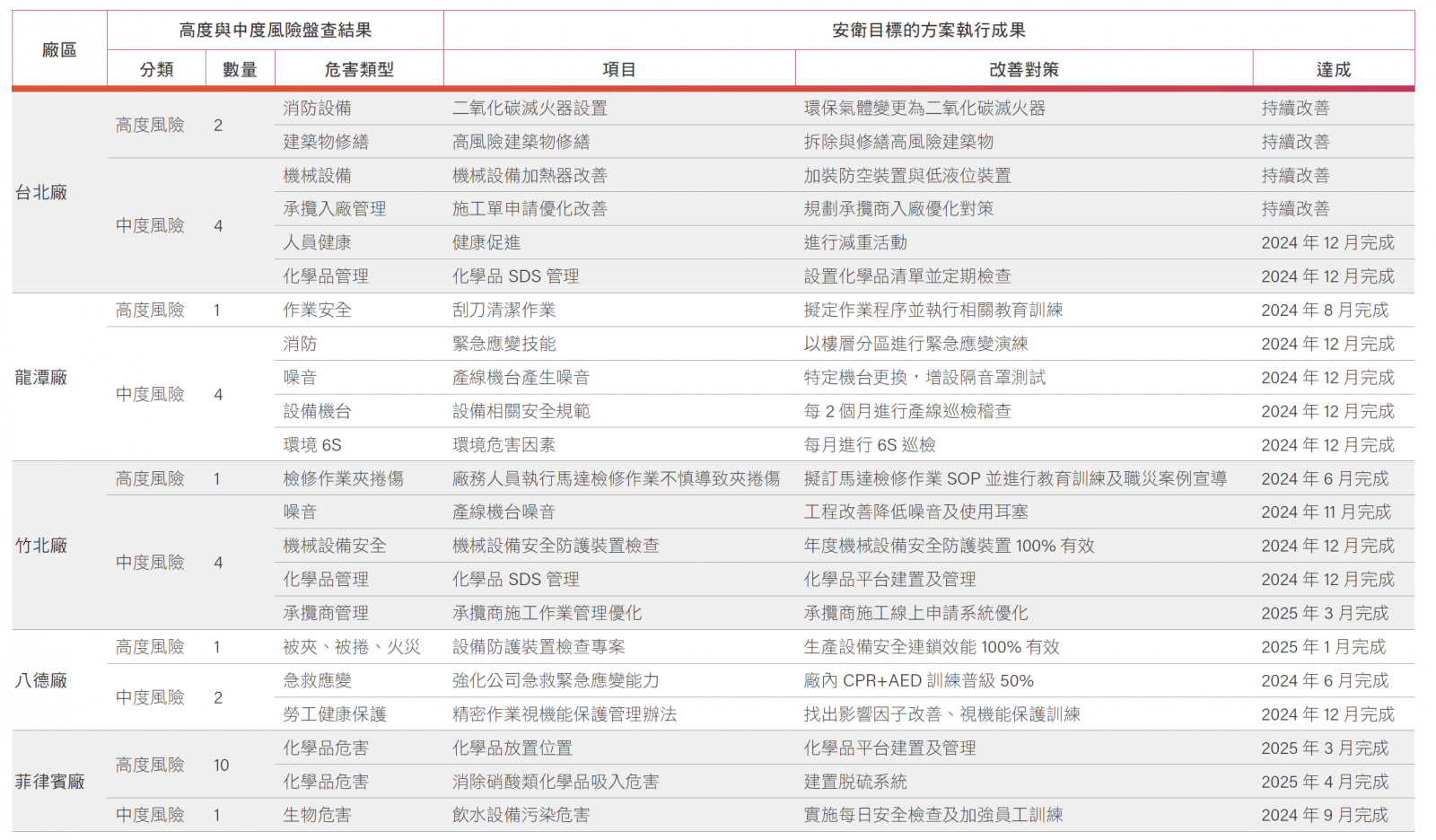 各廠風險盤查結果