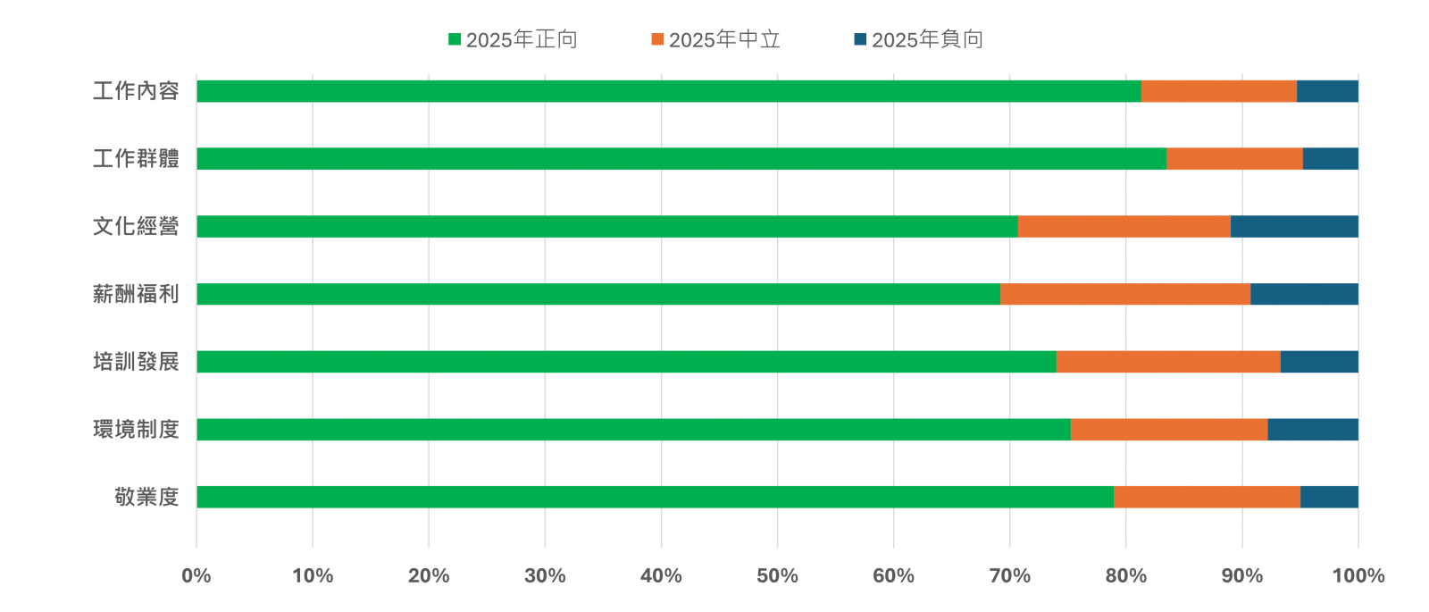 本公司重視員工意見與職場體驗,每年定期辦理員工滿意度調查,了解員工對工作本身、工作群體、公司文化、薪酬福利、培訓與發展,以及工作環境與制度等面向之滿意情形,同時評估員工敬業度表現。相關調查結果作為公司持續檢視人力資源管理與組織發展的重要依據,並據以推動各項改善措施,提升員工整體滿意度與組織凝聚力,營造穩定、友善且具發展性的職場環境。