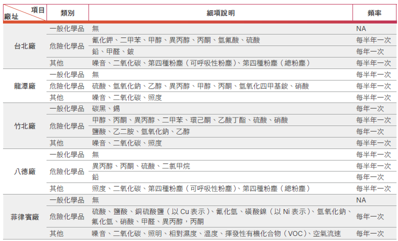 3. 定期實施作業環境監測,各項監測結果均符合法規標準